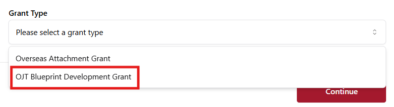 Select OJT Blueprint Development Grant from the dropdown.